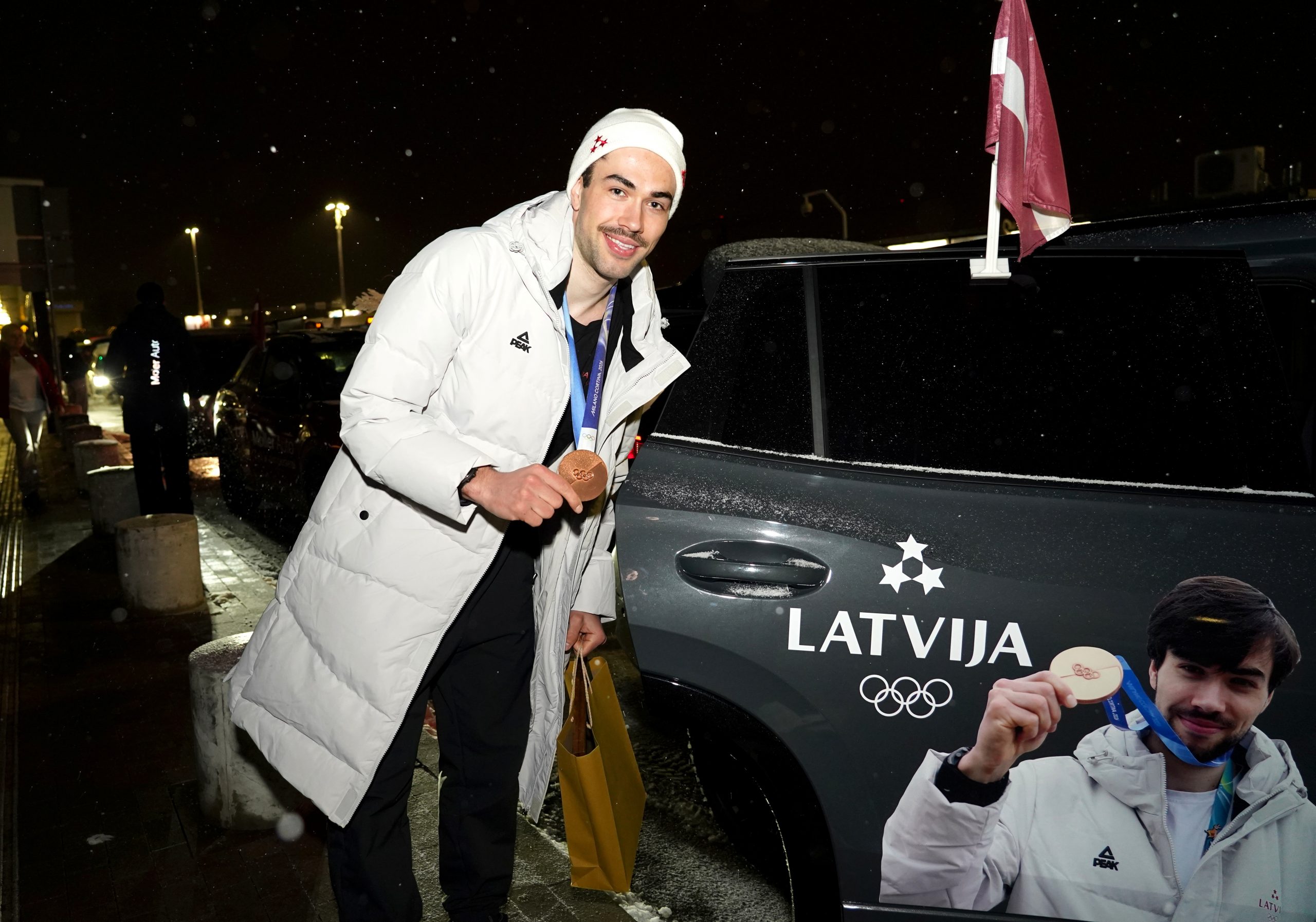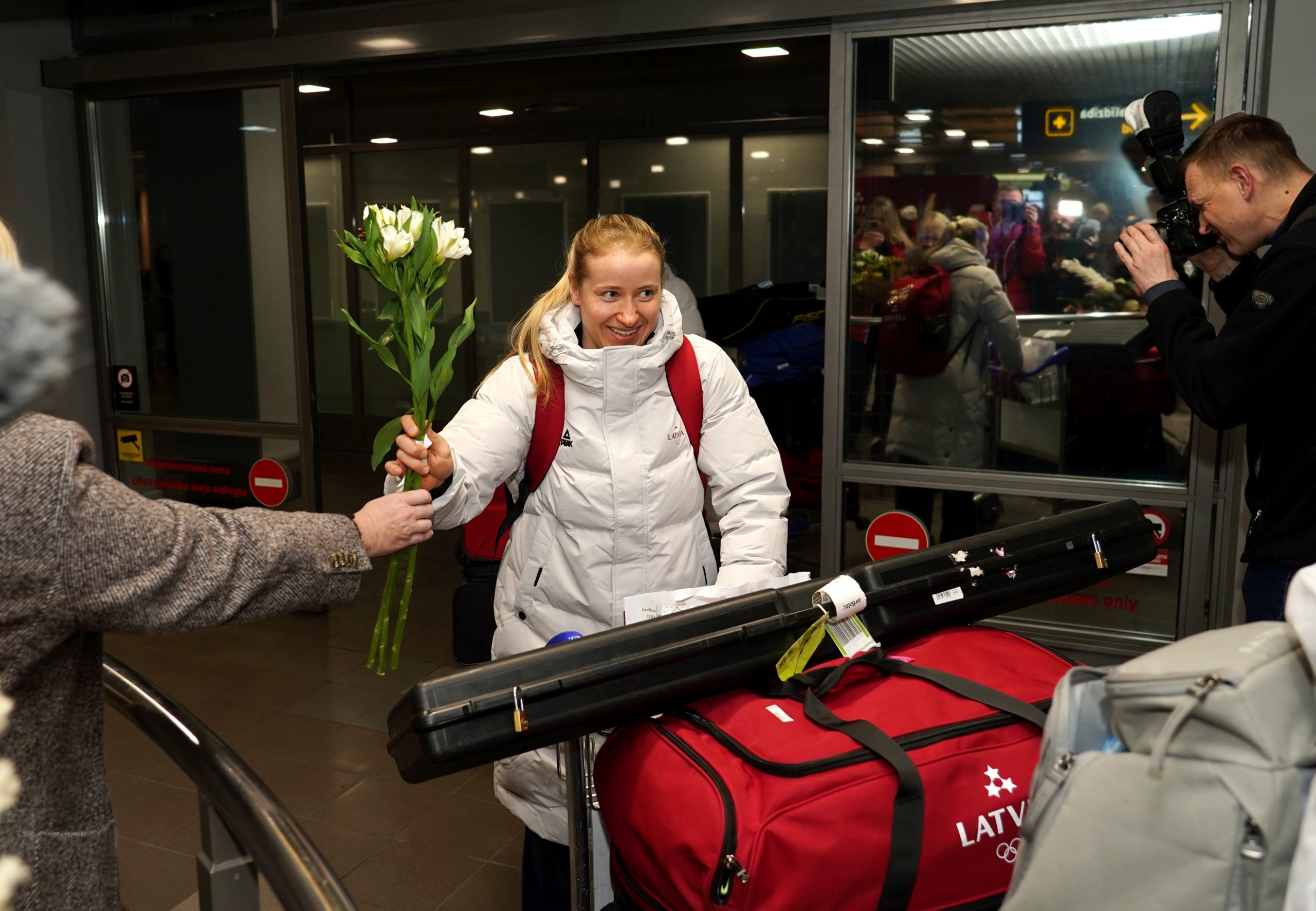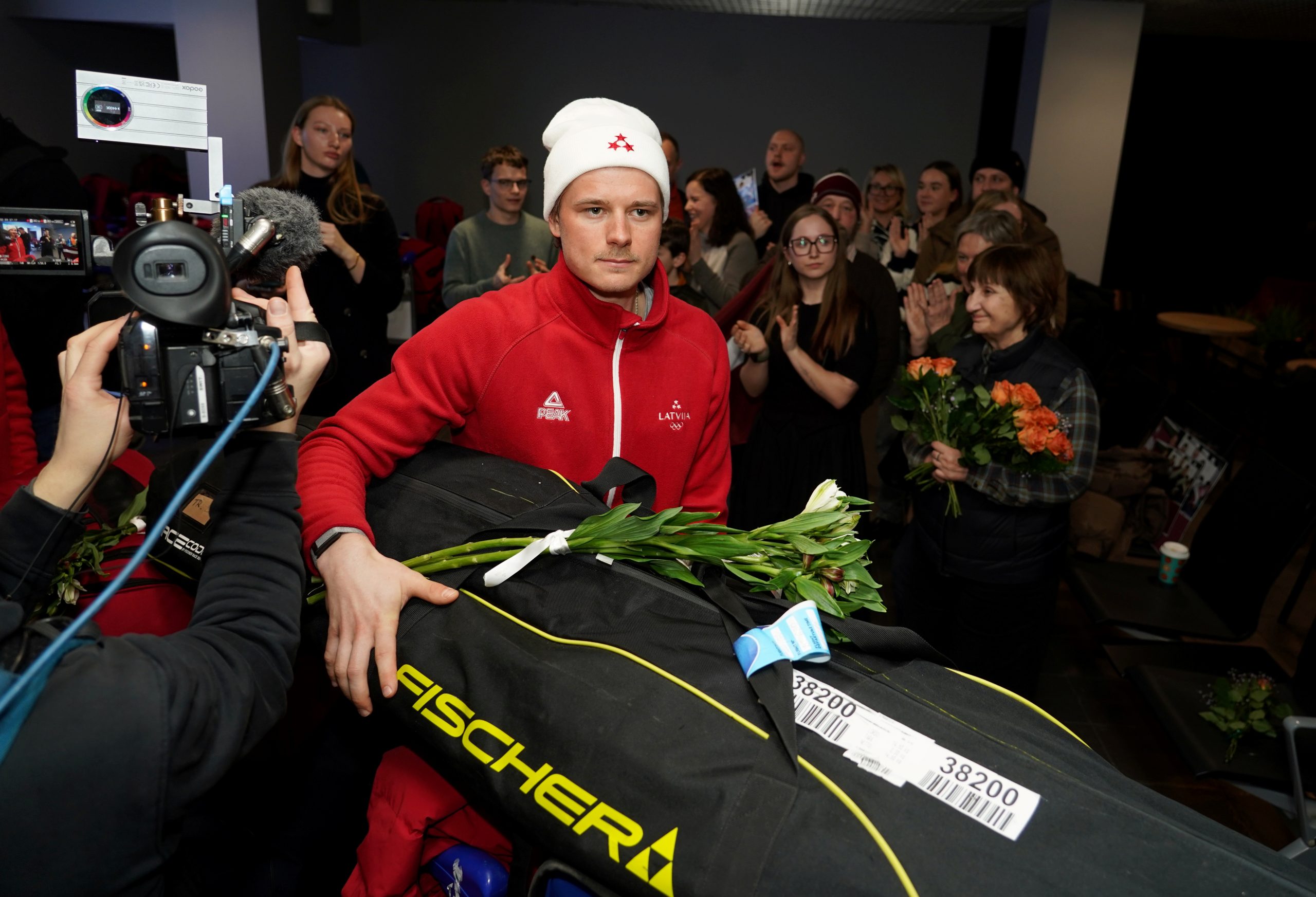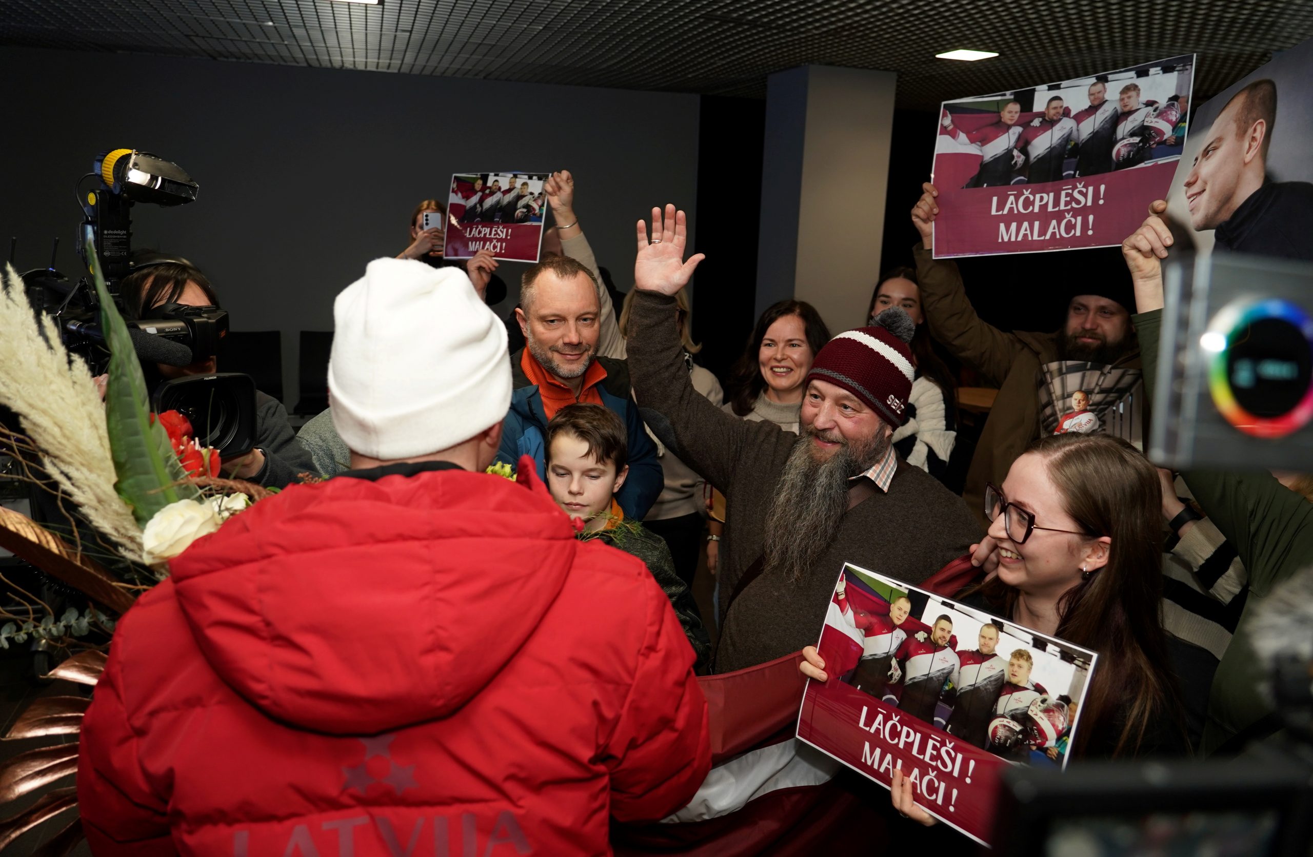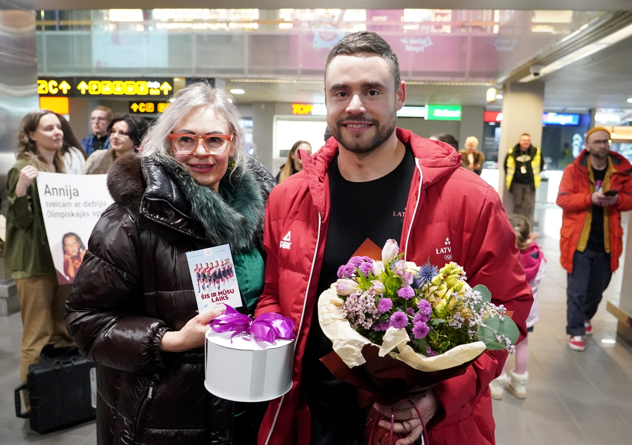 Rīgas lidostā otrdien tika sagaidīti Milānas un Kortīnas olimpisko spēļu dalībnieki, starp kuriem bija arī bronzas medaļu ieguvušais šorttrekists Roberts Krūzbergs.