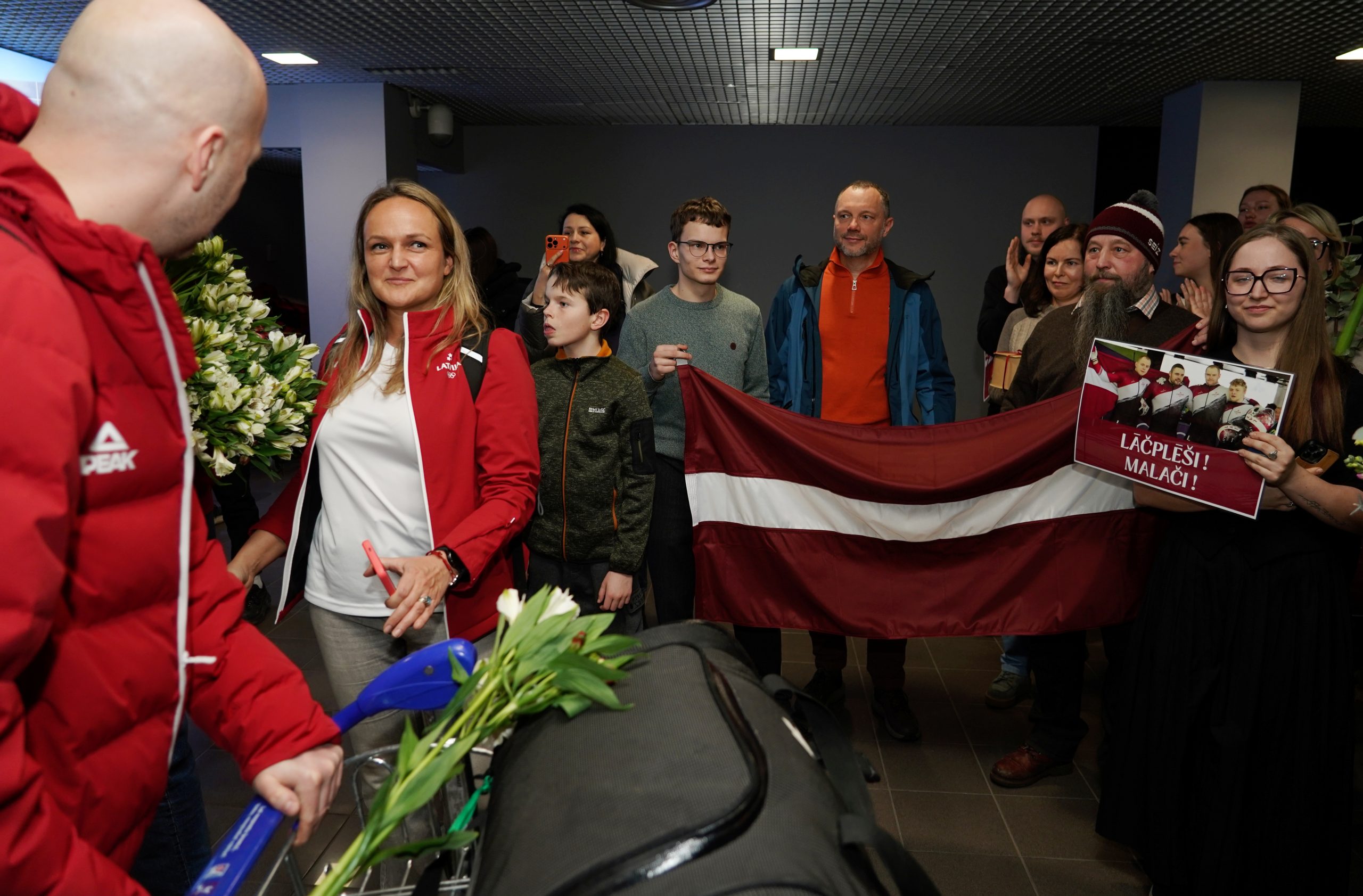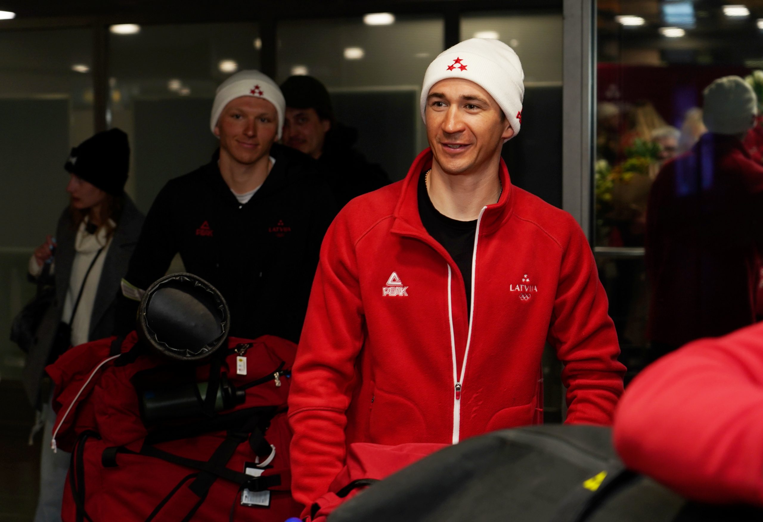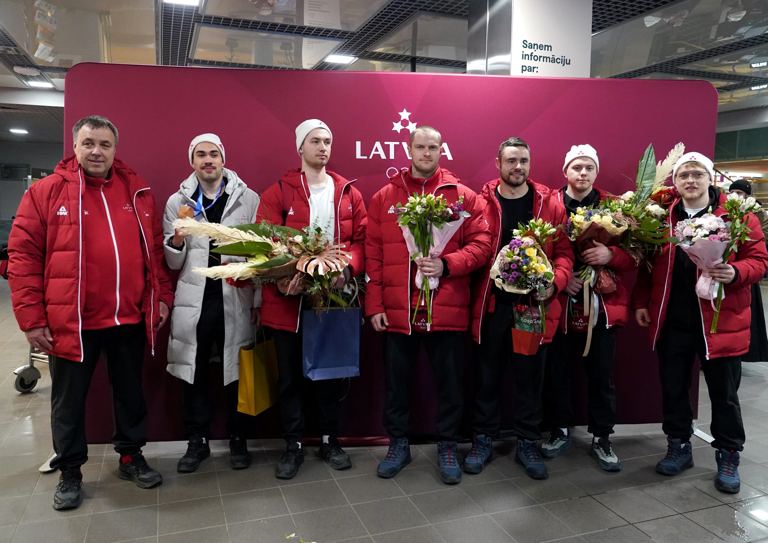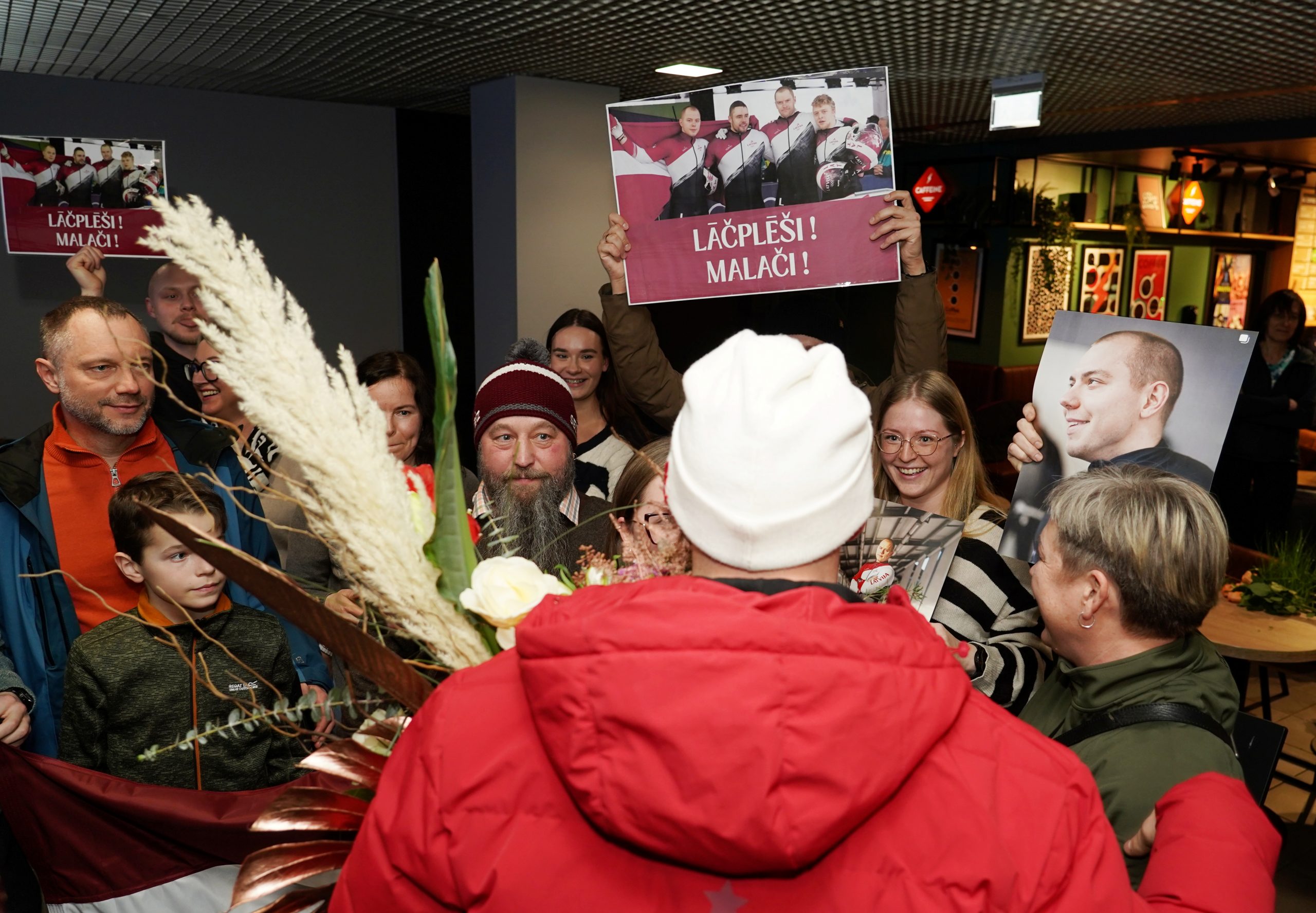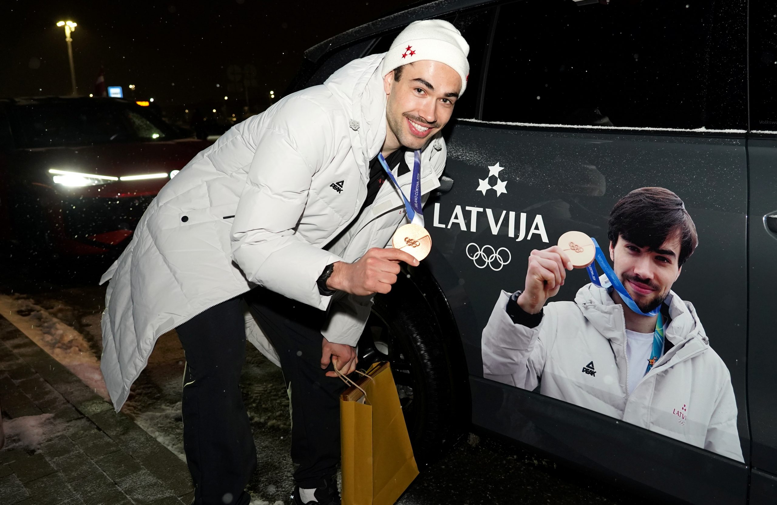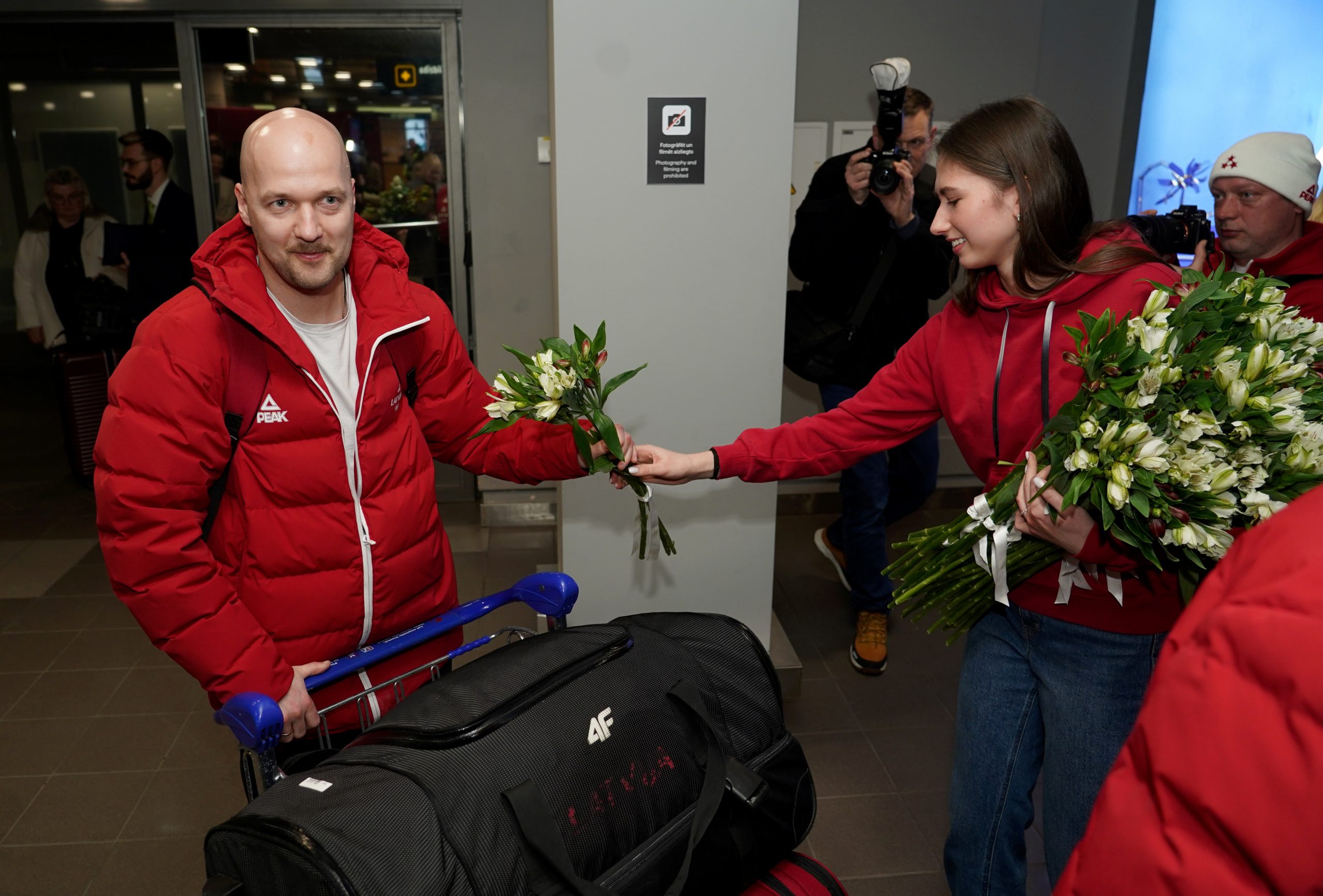 Rīgas lidostā otrdien tika sagaidīti Milānas un Kortīnas olimpisko spēļu dalībnieki, starp kuriem bija arī bronzas medaļu ieguvušais šorttrekists Roberts Krūzbergs.