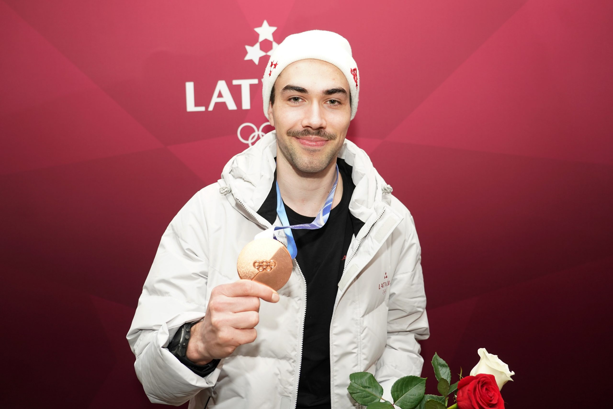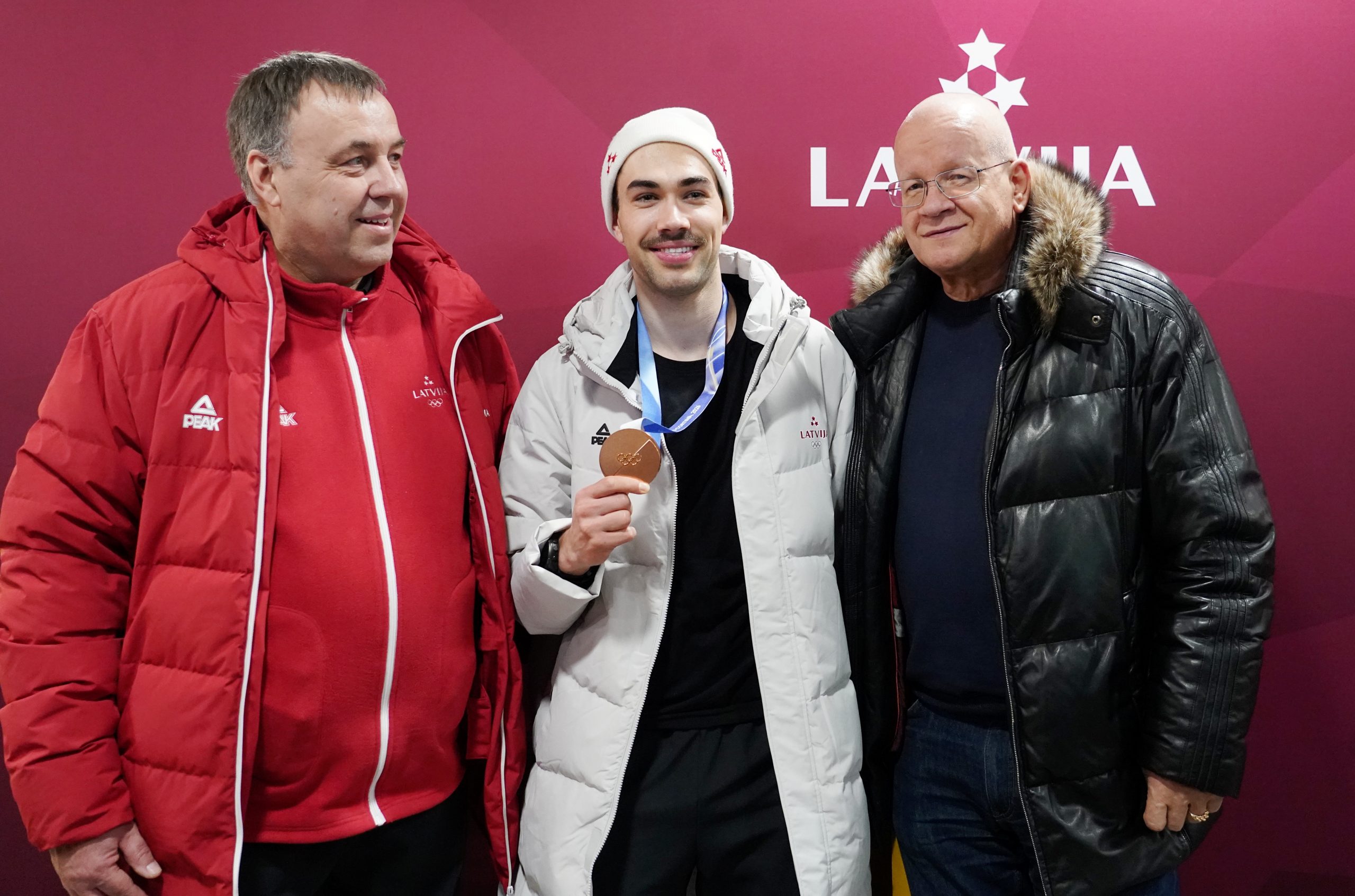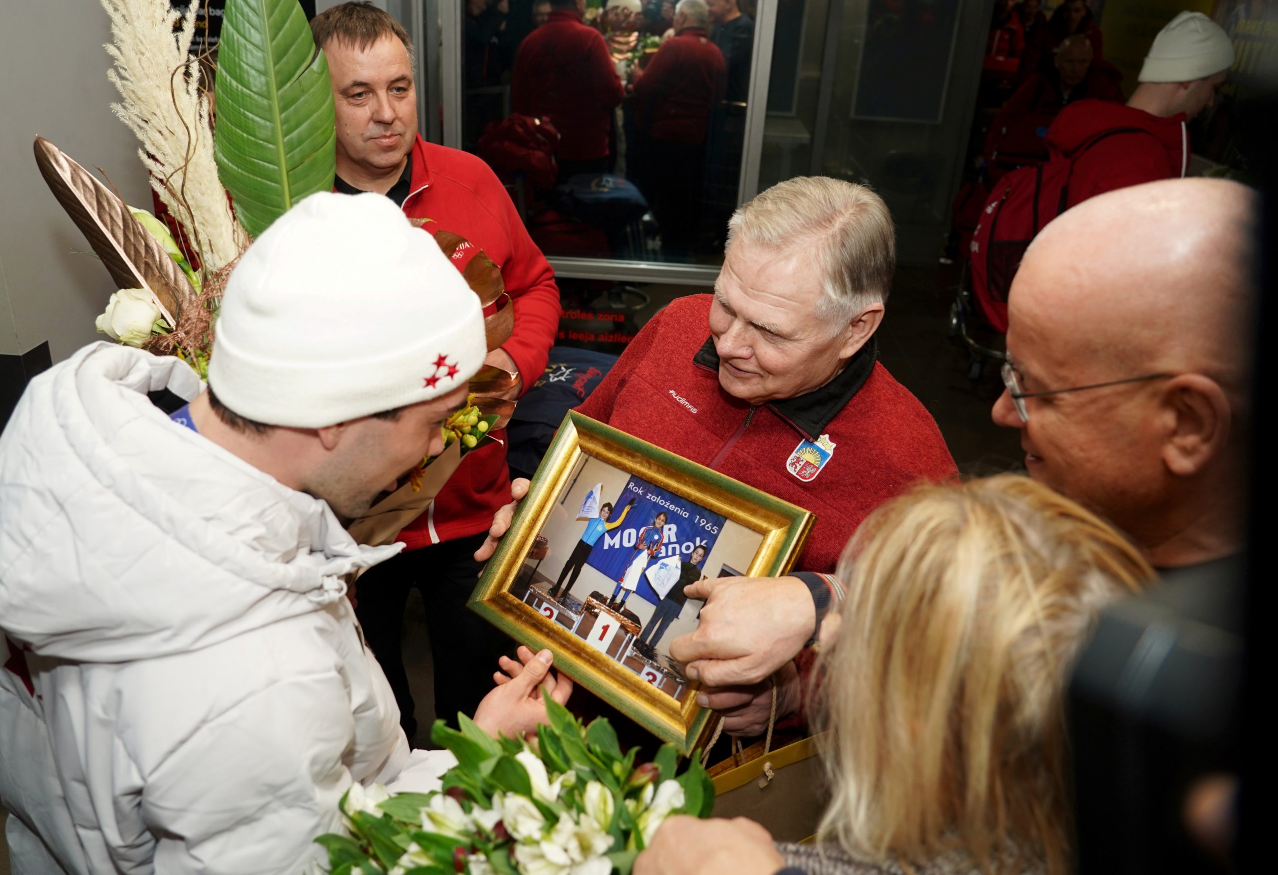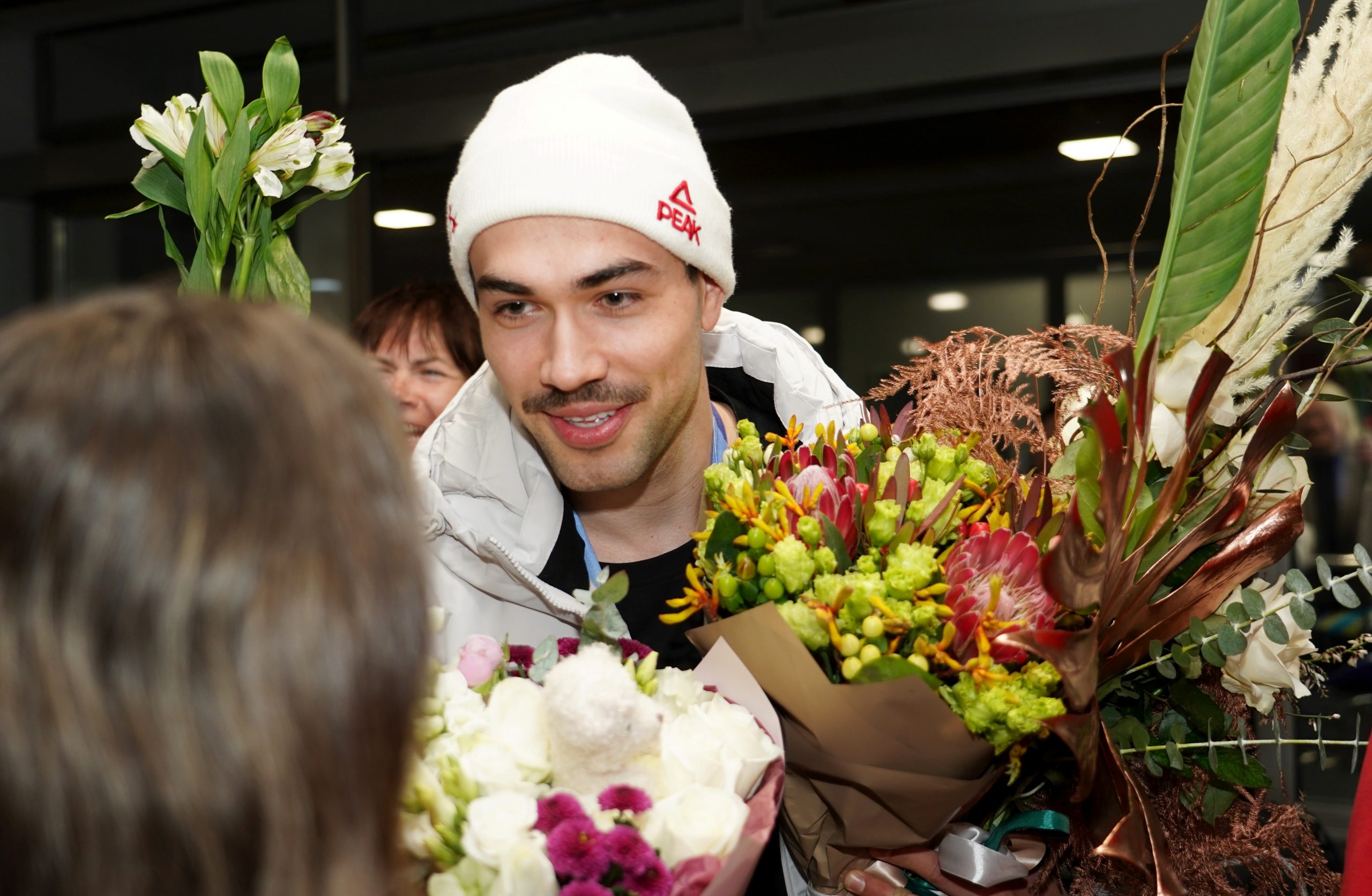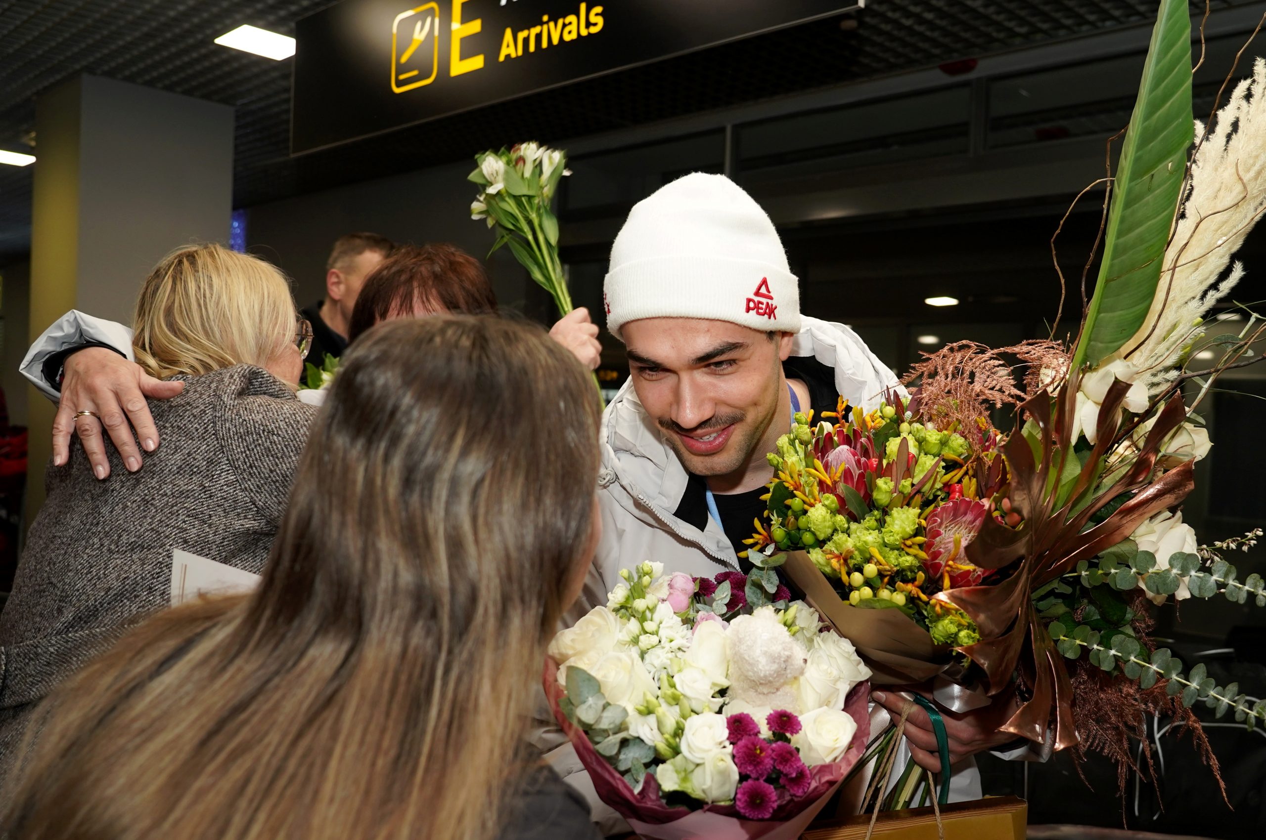 Rīgas lidostā otrdien tika sagaidīti Milānas un Kortīnas olimpisko spēļu dalībnieki, starp kuriem bija arī bronzas medaļu ieguvušais šorttrekists Roberts Krūzbergs.