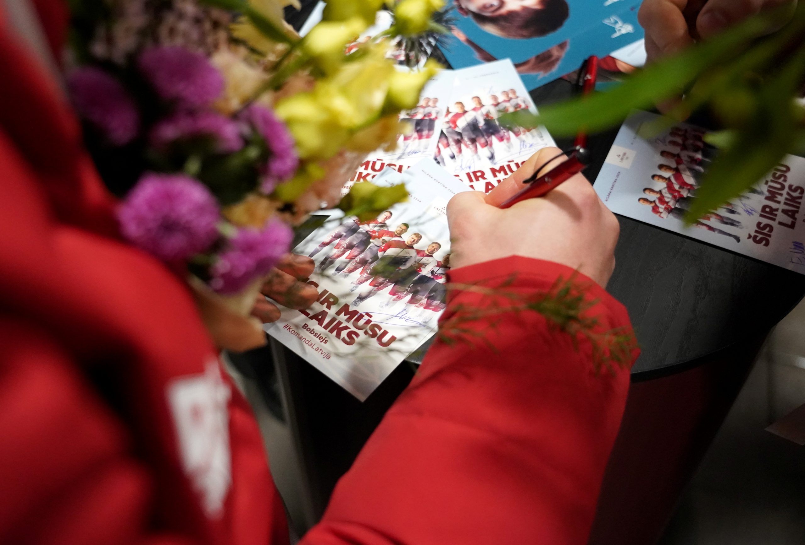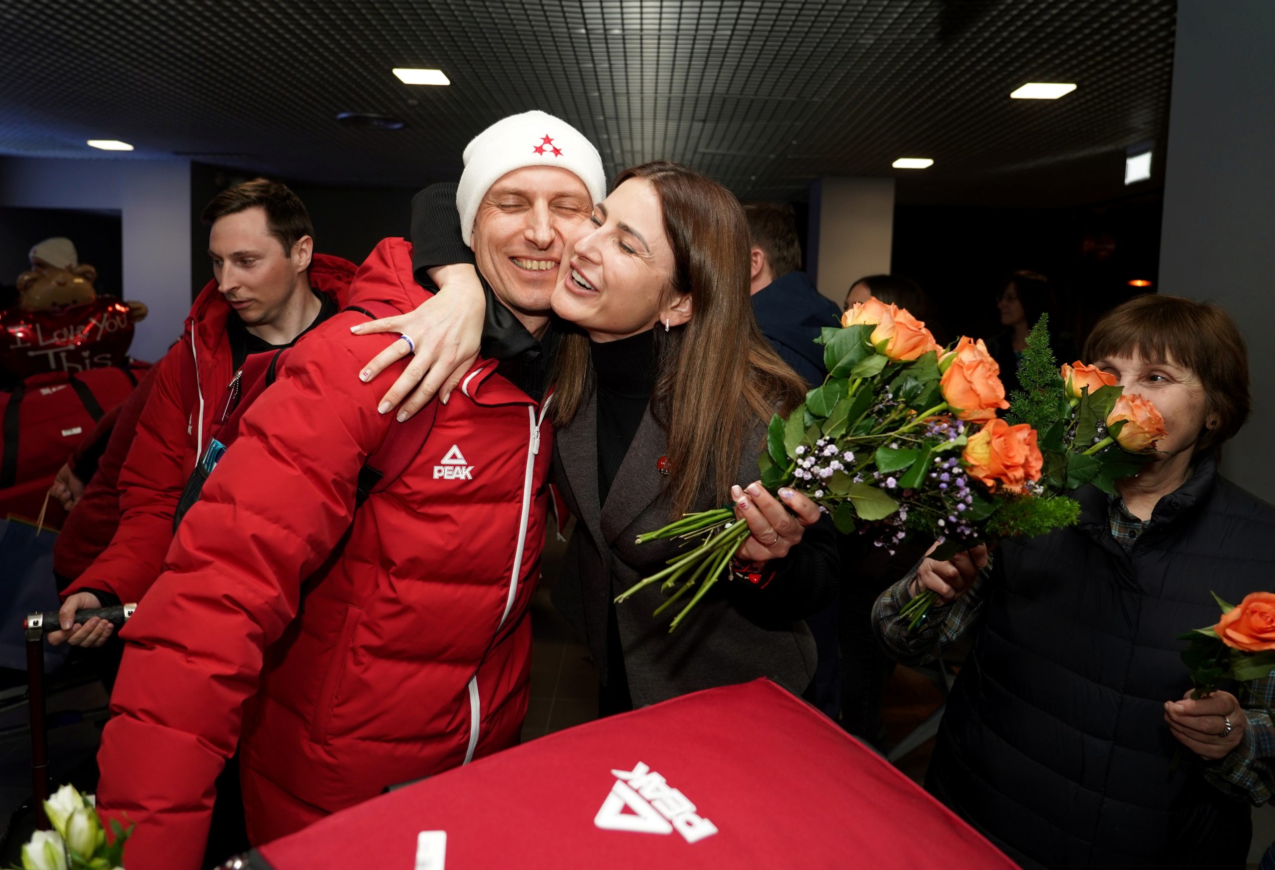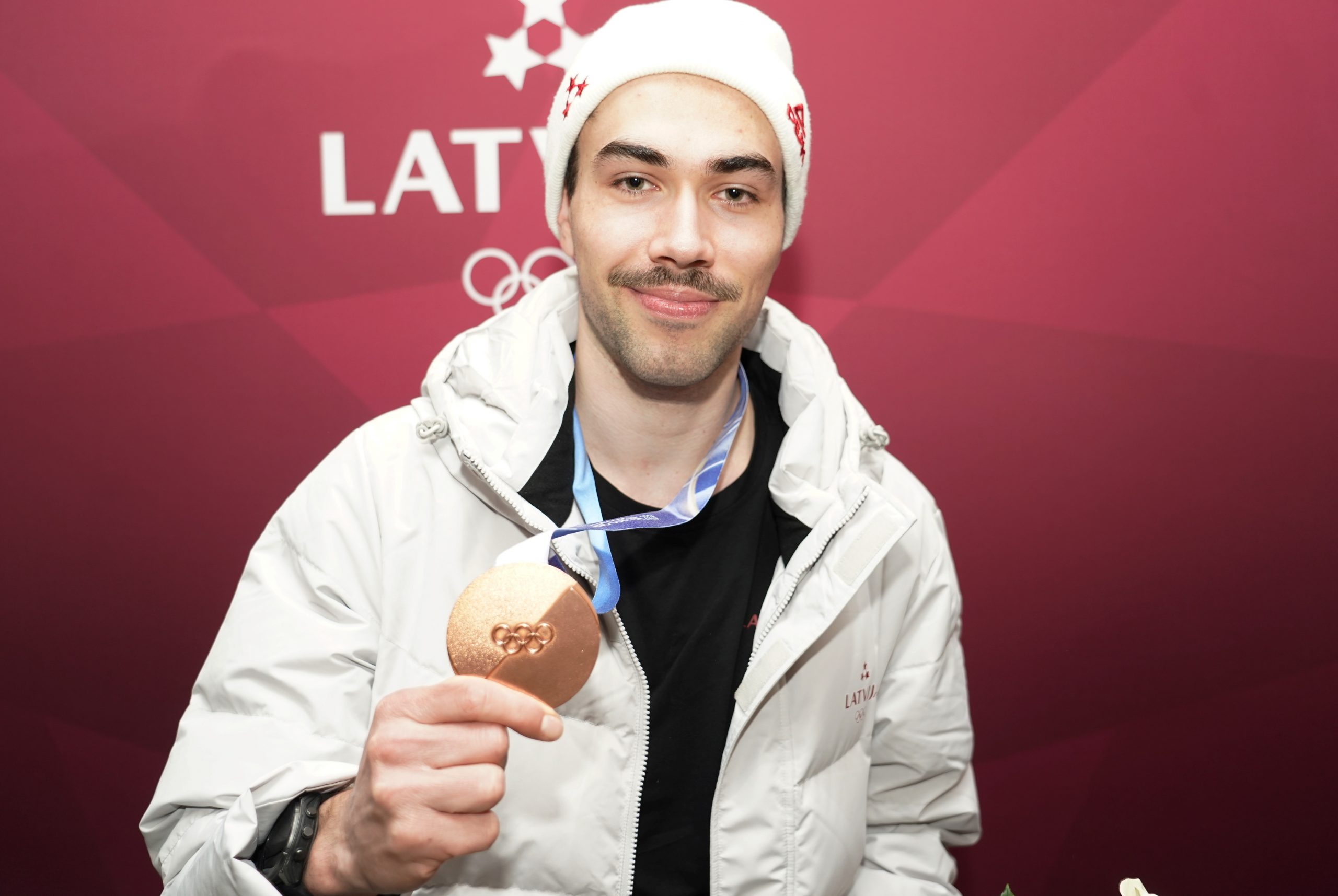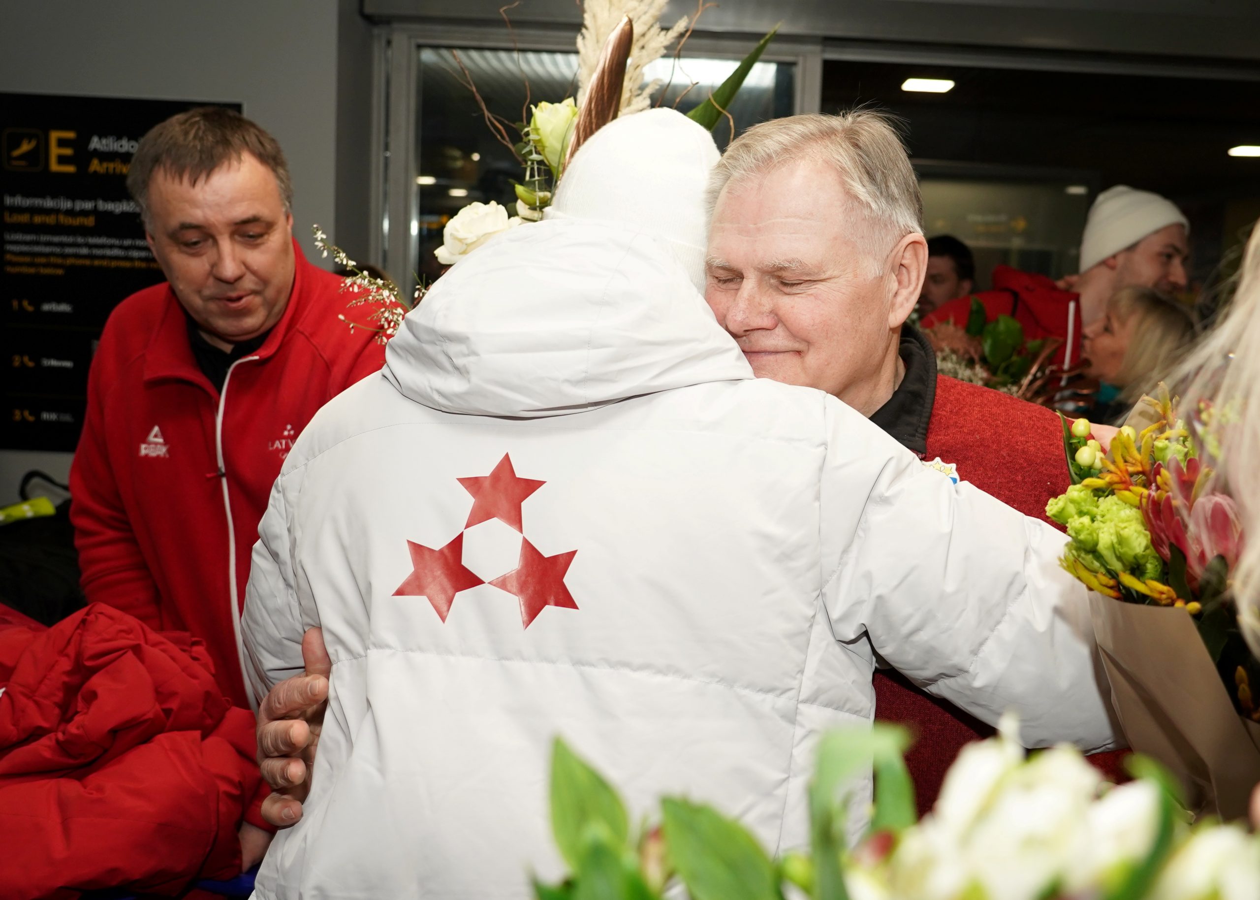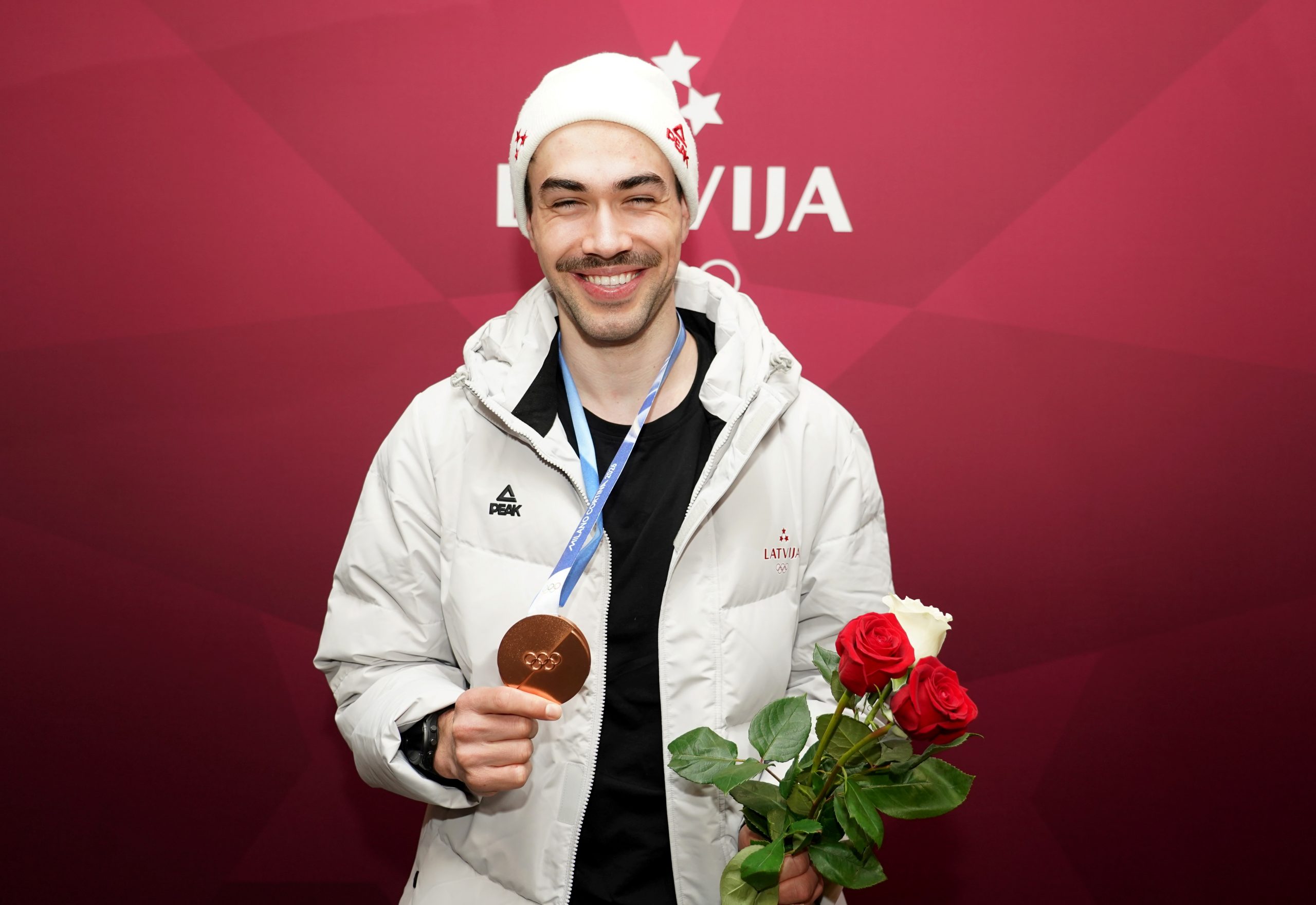 Rīgas lidostā otrdien tika sagaidīti Milānas un Kortīnas olimpisko spēļu dalībnieki, starp kuriem bija arī bronzas medaļu ieguvušais šorttrekists Roberts Krūzbergs.